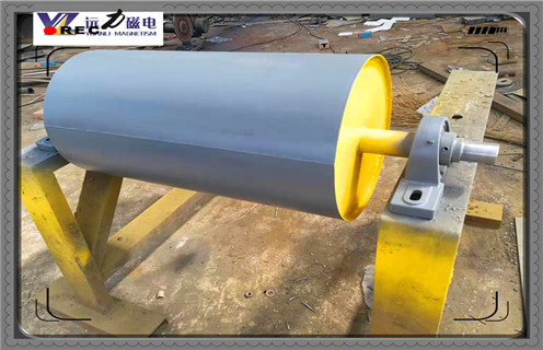 2、根據(jù)永磁磁力滾筒磁系包角的不同,可以分為永磁磁滑輪及永磁磁滾筒。磁滑輪的磁包角為360;,磁極組均勻分布在筒內(nèi)圓周,組成滿圓型磁系,磁系和筒體一起隨皮帶同速轉(zhuǎn)動,工作平穩(wěn),安全可靠。由于其卸礦原理是通過皮帶拖曳力實現(xiàn)的,一般用于磁場強度為180mT以下的永磁磁力滾筒,以減小對皮帶損傷。