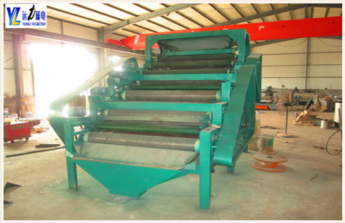 1、多級(jí)磁輥,除鐵效果更好可以做成磁滾筒與磁輥串聯(lián),或者多級(jí)強(qiáng)磁輥串聯(lián)。不僅增加了弱磁性礦物在磁場(chǎng)的作用次數(shù),翻動(dòng)、梯度式磁場(chǎng)更增強(qiáng)了選別效果,大大增加了除凈率。